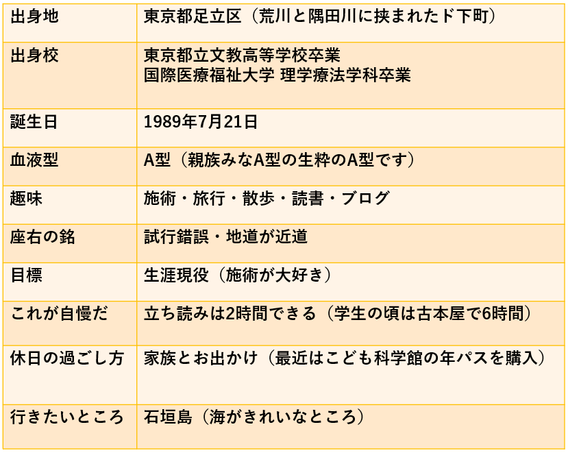 2012年に理学療法士の資格を取得し、現在も総合病院にて、さまざまな症状でお悩みの患者様のリハビリテーションに携わっています。